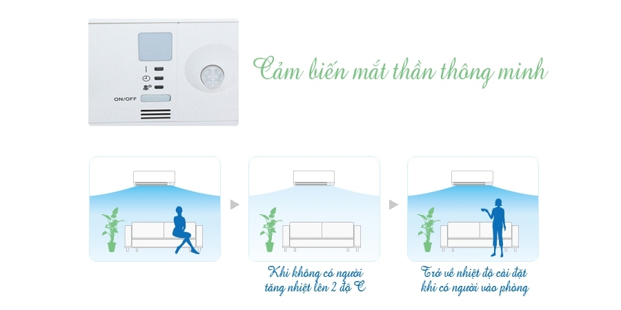 Điều hòa inverter Daikin 1 chiều 17700BTU chính hãng giá khuyến mãi còn được trang bị cảm biến hồng ngoại mắt thần thông minh giúp phát hiện chuyển động của người trong phòng. Khi không tìm thấy sự có mặt của người dùng, máy sẽ tự động tăng nhiệt độ lên 2 độ C, khi người dùng trở lại máy sẽ đưa nhiệt độ về lại như cài đặt ban đầu. Nhờ đó tiết kiệm điện năng tiêu thụ cho bạn.